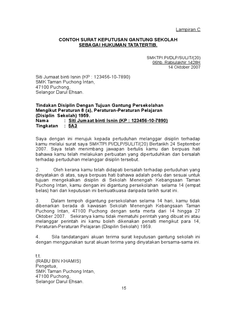 5 Contoh Surat Keputusan Gantung Sekolah Lampiran C Pdf