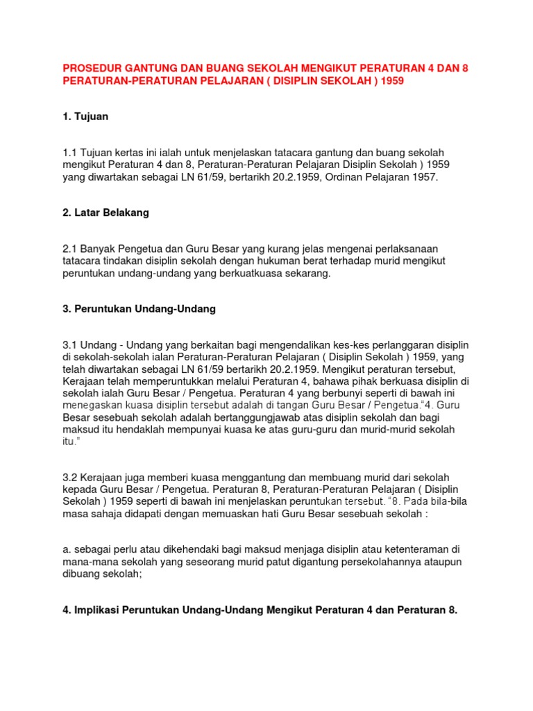 Prosedur Gantung Dan Buang Sekolah Mengikut Peraturan 4 Dan 8 Peraturan Pdf